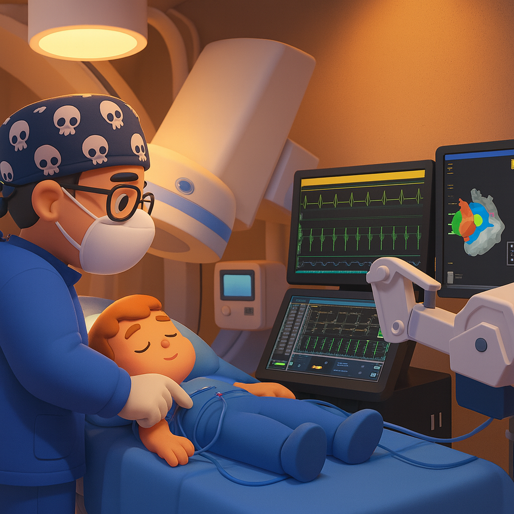 Procedimiento avanzado para diagnosticar y tratar arritmias, evaluando en detalle la actividad eléctrica del corazón infantil de forma segura y precisa.